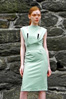 Contains: Rayon and cotton blend knit dress with slit detailing in top and side