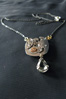 Contains: Gold/silver plated chain necklace with a large watch piece pendant and accents. made from pieces of a vintage watch. one of a kind.