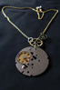 Contains: Gold/silver plated chain necklace with a large watch piece pendant and accents. made from pieces of a vintage watch. SOLD.